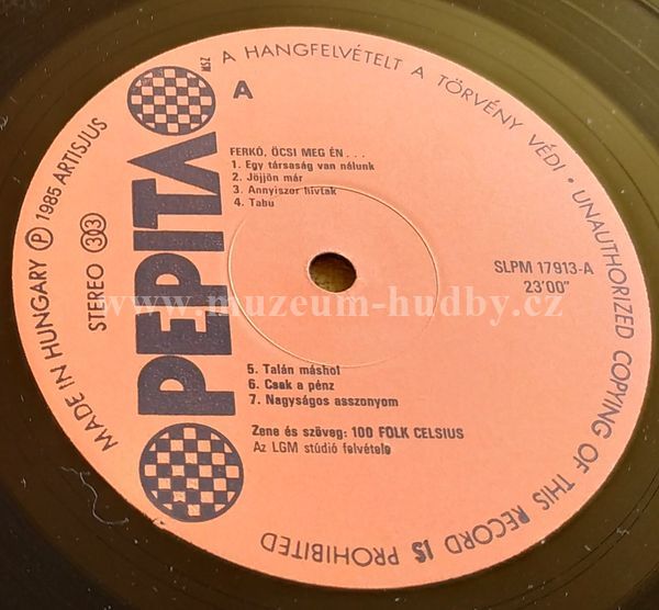 - hraná deska, běžné stopy používání (drobné škrábance a šum nebránící normálnímu poslechu)
