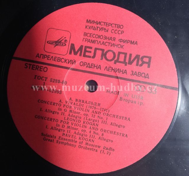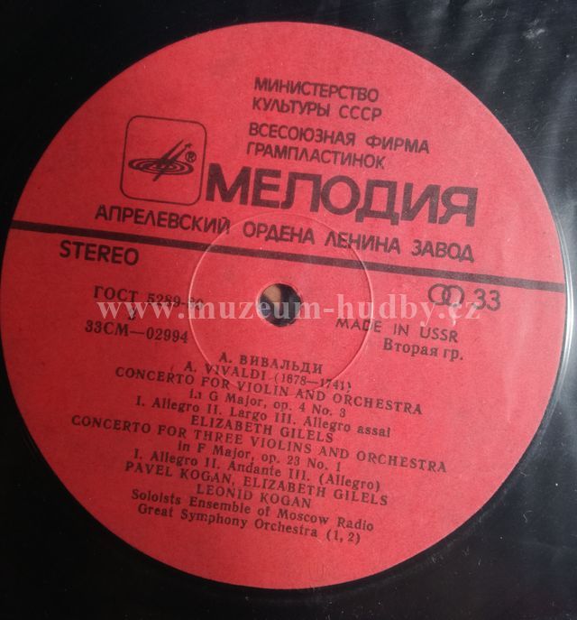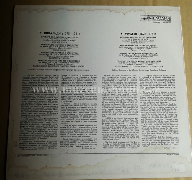 A. Vivaldi - Leonid Kogan, Elisabeth Gilels, Pavel Kogan, Soloist's Ensemble Of The Moscow Radio Large Symphony Orchestra