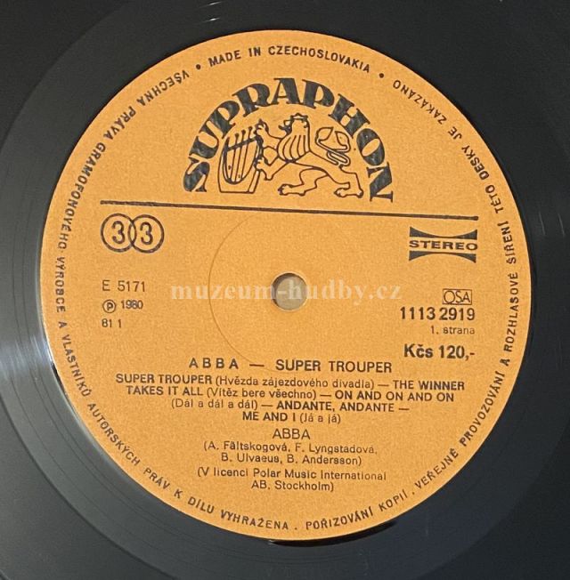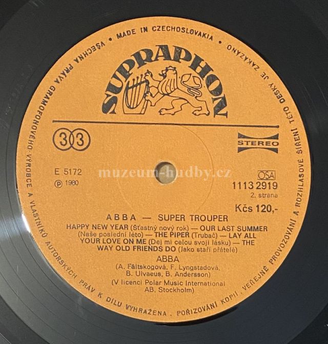 A1 Super Trouper (Hvězda Zájezdového Divadla) A2 The Winner Takes It All (Vítěz Bere Všechno) A3 On And On And On (Dál A Dál A Dál) A4 Andante, Andante A5 Me And I (Já A Já) B1 Happy New Year (Šťastný Nový Rok) B2 Our Last Summer (Naše Poslední Léto) B3 The Piper (Trubač) B4 Lay All Your On Me (Dej Mi Celou Svoji Lásku) B5 The Way Old Friends Do (Jako Staří Přátelé)