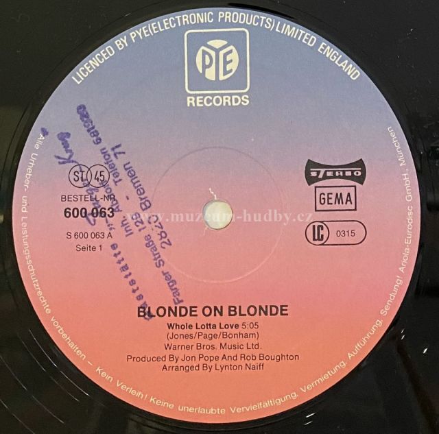 Lbl.: Pye Records - 600 063