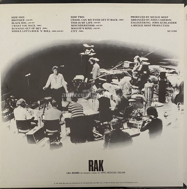 A1 Brother A2 Black Dog A3 I Want You Back A4 Running Out Of Sky A5 Whole Lotta Rock 'N' Roll B1 Chaos: Can't We Ever Get It Back B2 This Is My Life B3 Misunderstood B4 Maggie's Song B5 City