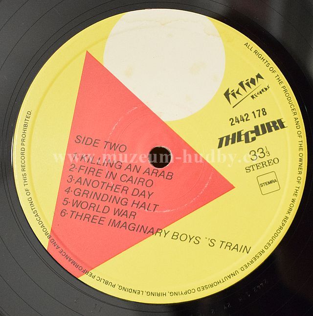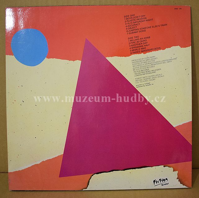 A1 Boys Don't Cry 2:35 A2 Plastic Passion 2:11 A3 10.15 Saturday Night 3:42 A4 Accuracy 2:15 A5 Object 2:59 A6 Jumping Someone Else's Train 2:54 A7 Subway Song 1:56 B1 Killing An Arab 2:20 B2 Fire In Cairo 3:21 B3 Another Day 3:42 B4 Grinding Halt 2:48 B5 World War 2:35 B6 Three Imaginary Boys 3:13
