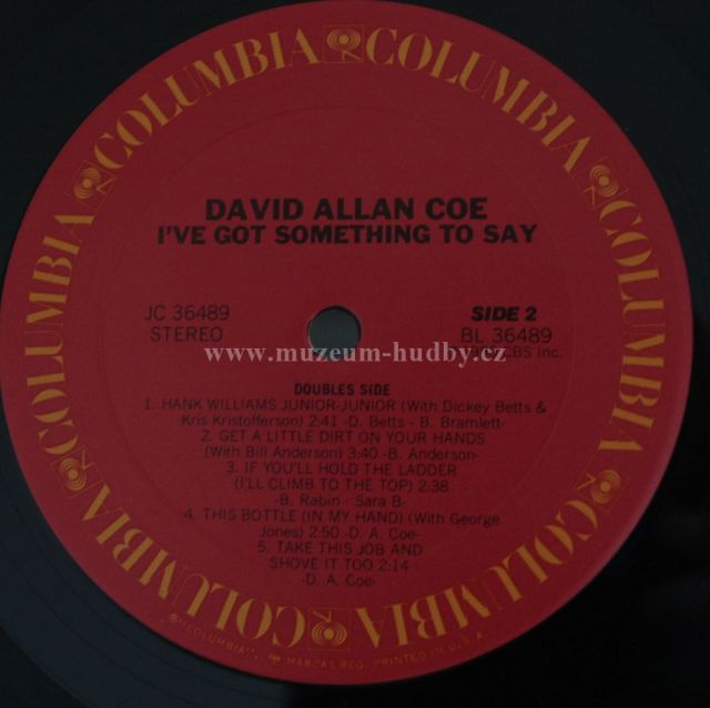 David Allan Coe (born September 6, 1939) is an American outlaw country music singer and guitarist who achieved popularity in the 1970s and 1980s. As a singer, his biggest hits were "Mona Lisa Lost Her Smile," "The Ride," "You Never Even Called Me by My Name," "She Used to Love Me a Lot," and "Longhaired Redneck." His best-known compositions are the No. 1 successes "Would You Lay With Me (In a Field of Stone)," which was covered by Tanya Tucker; and "Take This Job and Shove It," which was later covered by Johnny Paycheck that was later a hit movie (both Coe and Paycheck had minor parts in the film).