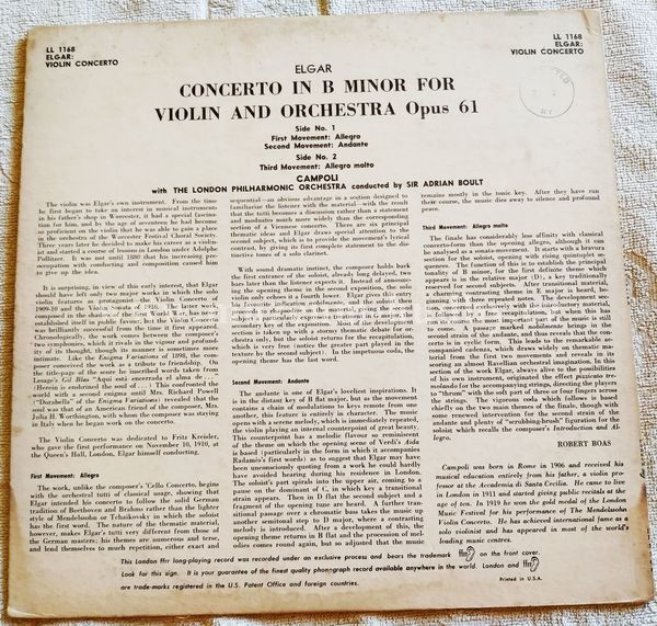 Elgar / Campoli With The London Philharmonic Orchestra Conducted By Sir Adrian Boult