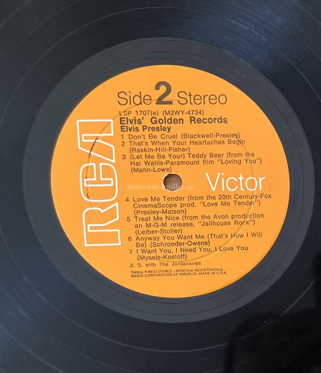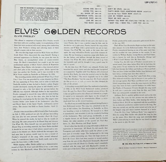 A1 Hound Dog A2 Loving You A3 All Shook Up A4 Heartbreak Hotel A5 Jailhouse Rock A6 Love Me A7 Too Much B1 Don’t Be Cruel B2 That’s When Your Heartaches Begin B3 (Let Me Be Your) Teddy Bear B4 Love Me Tender B5 Treat Me Nice B6 Anyway You Want Me (That’s How I Will Be) B7 I Want You, I Need You, I Love You