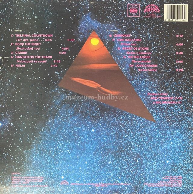 A1 The Final Countdown (Tři, Dva, Jedna ... Teď!) A2 Rock The Night (Rozhoupej Noc) A3 Carrie A4 Danger On The Track (Nebezpečí Na Cestě) A5 Ninja B1 Cherokee B2 Time Has Come (Přišel Čas) B3 Heart Of Stone (Srdce Z Kamene) B4 On The Loose (Na Svobodě) B5 Love Chaser (Lovec Lásky)
