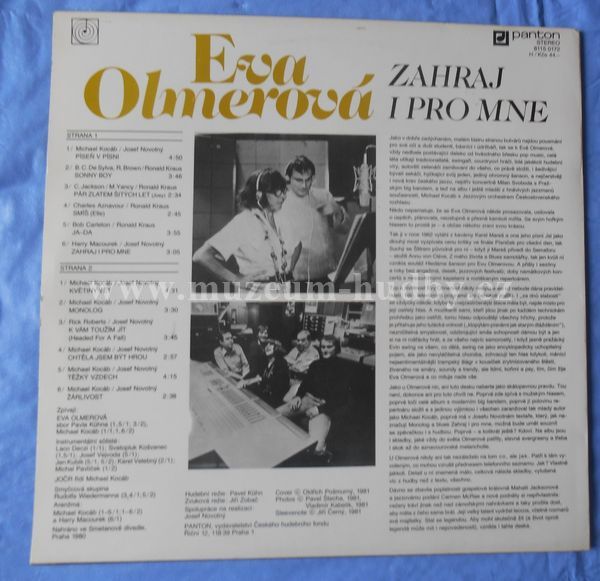 Vocals [Zpívají] – Eva Olmerová, Michael Kocáb (tracks: A1, B1, B6)