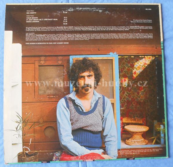 Side One is occupied by one song, Big Swifty. Here, the "Bitches Brew" influence is quite strong, even to the point that several solos happen simultaneously. Side Two starts with a Zappa-fied Blues persiflage, Your Mouth. Then, It Just Might Be A One-Shot Deal. It could almost have been "real" Pop if there weren't these Zappa-isms: a bluesy groove is interrupted by a sudden bizarre shift and there you have a lovely almost Country & Western guitar solo, which is again interrupted to bring back the bluesy groove. The instant the song comes to an end, the title song starts with a mighty groove and trumpets play the theme. The song is more than 11 minutes long. Don Preston has a strong synth solo, then Zappa makes a long and interesting solo statement, the big band takes over (great!), Aynsley Dunbar plays one of the very few drum solos I accept (the beat is carried through), and then the theme is elaborately re-stated.