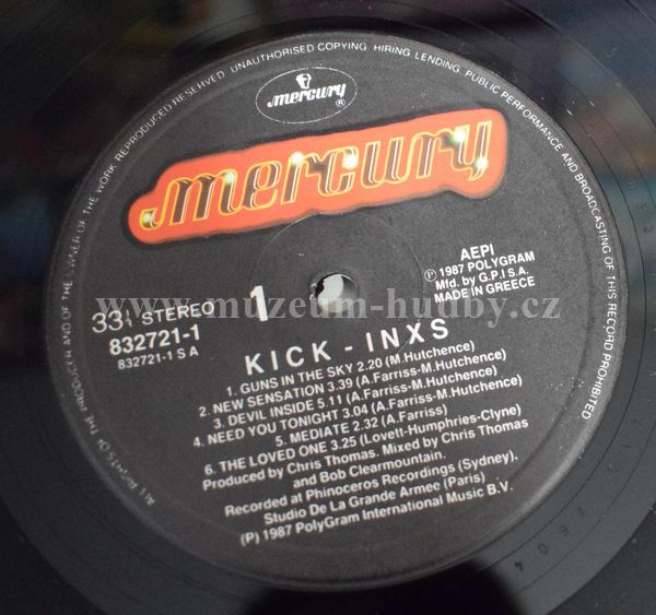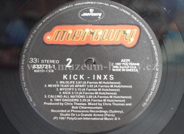 Poster included. A1 Guns In The Sky 2:20 A2 New Sensation 3:39 A3 Devil Inside 5:11 A4 Need You Tonight 3:04 A5 Mediate 2:32 A6 The Loved One 3:25 B1 Wild Life 3:07 B2 Never Tear Us Apart 3:02 B3 Mystify 3:15 B4 Kick 3:13 B5 Calling All Nations 3:00 B6 Tiny Daggers 3:29