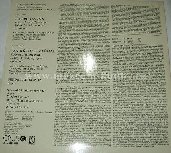 J. Haydn / J. K. Vaňhal / Ferdinand Klinda / Slovak Chamber Orchestra / Bohdan Warchal