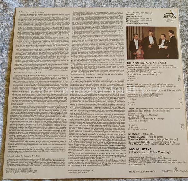 J. S. Bach / Jiří Mihule, František Kimel, František Sláma, Ars Rediviva, Milan Munclinger