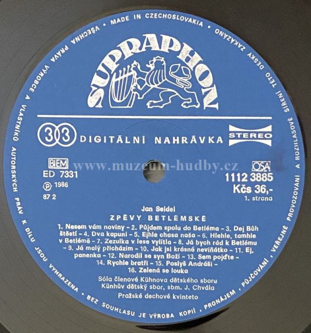 Lbl.: Supraphon – 1112 3885