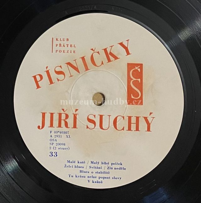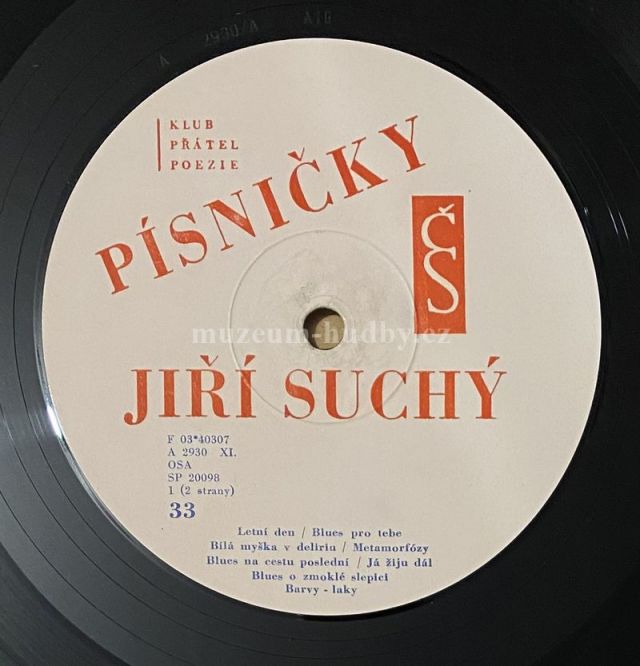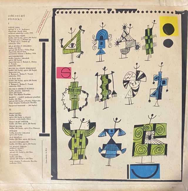 A1 Vlasta Sodomová A Viktor Sodoma– Letní Den A3 Jiří Suchý A Vilém Rogl– Bílá Myška V Deliriu A4 Jiří Suchý– Metamorfózy A5 Jiří Suchý– Blues Na Cestu Poslední A6 Jiří Suchý– Já Žiju Dál A7 Jiří Suchý– Blues O Zmoklé Slepici A8 Jiří Suchý A Pavlína Filipovská– Barvy - Laky B1 Jiří Suchý– Malé Kotě B2 Jiří Suchý– Malý Blbý Psíček B3 Eva Pilarová– Želví Blues B4 Jiří Suchý– Svítání B5 Jiří Suchý– Zlá Neděle B6 Jiří Suchý– Blues O Stabilitě B7 Jiří Suchý A Jiří Šlitr– Tu Krásu Nelze Popsat Slovy B8 Jiří Suchý A Jiří Šlitr– V Kašně