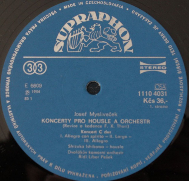 Josef Mysliveček / Shizuka Ishikawa / Dvořák Chamber Orchestra / Libor Pešek