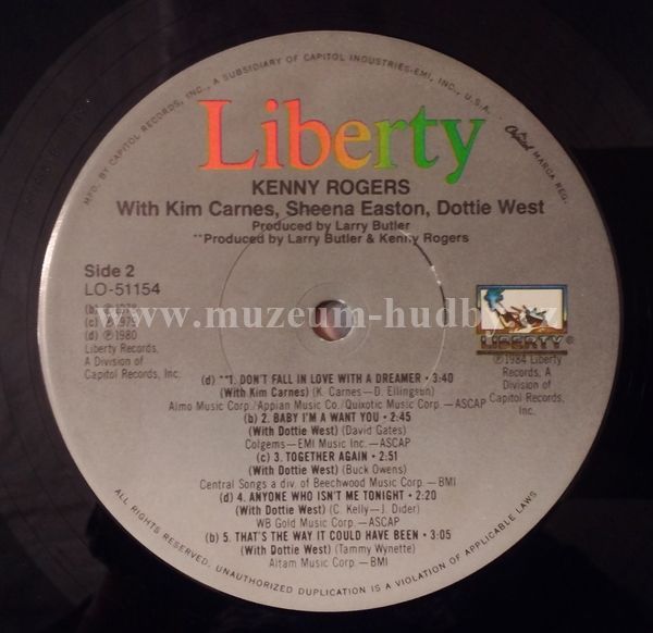 B1 –Kenny Rogers With Kim Carnes Don't Fall In Love With A Dreamer