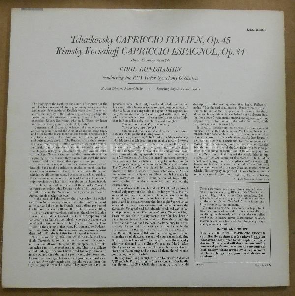 KIRIL KONDRASHIN / RCA Victor Symphony / Tchaikovsky / Rimsky-Korsakov