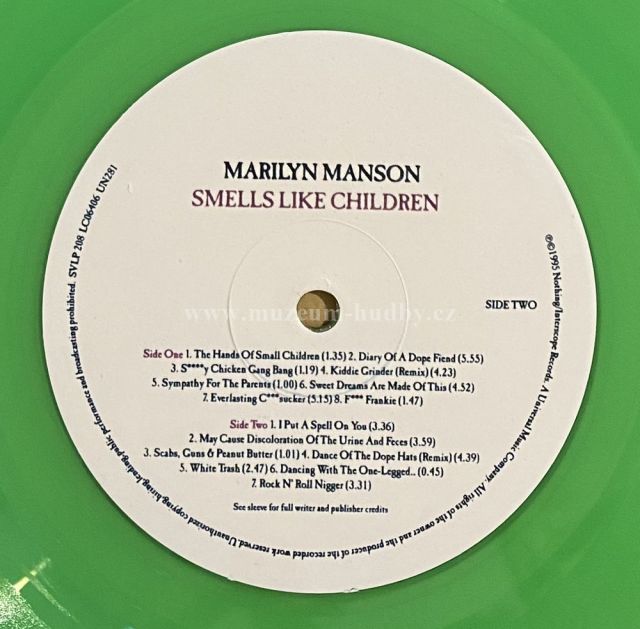 Green Transparent Vinyl A1 The Hands of Small Children A2 Diary of a Dope Fiend A3 S****y Chicken Gang Bang A4 Kiddie Grinder (Remix) A5 Sympathy for the Parents A6 Sweet Dreams (are made of this) A7 Everlasting C***sucker (Remix) A8 F*** Frankie B1 I Put a Spell on You B2 May Cause Discoloration of the Urine or Feces B3 Scabs, Guns and Peanut Butter B4 Dance of the Dope Hats (Remix) B5 White Trash (Remixed by Tony f. wiggins) B6 Dancing with the One-Legged... B7 Rock 'n' Roll Nigger