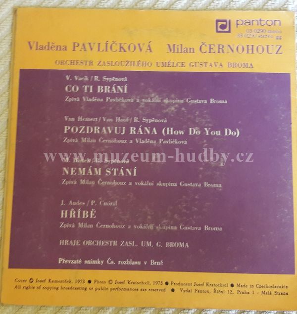 Lyrics By – Růžena Sypěnová Music By – Mojmír Bártek Orchestra, Backing Vocals – Gustav Brom Orchestra