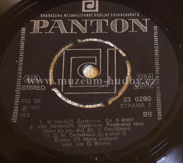 Backing Vocals, Orchestra – Gustav Brom Orchestra Lyrics By – Růžena Sypěnová Music Consultant – V. Vacík