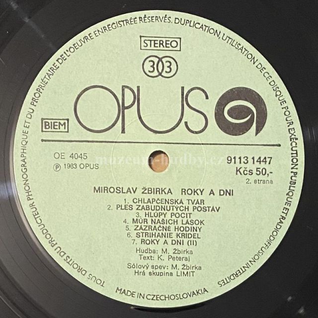 A1 Roky A Dni /I./ A2 Modré Viečka A3 S Tebou A4 Kráčam Na Pódium A5 Denisa A6 Motýľ Admirál A7 Nechodí B1 Chlapčenská Tvár B2 Ples Zabudnutých Postáv B3 Hlúpy Pocit B4 Múr Našich Lások B5 Zázračné Hodiny B6 Strihanie Krídel B7 Roky A Dni /II./