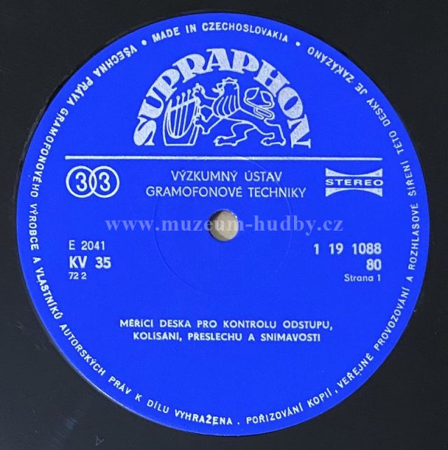 Lbl.: Supraphon – 1 19 1088, Čs. Hifi-klub – 1 19 1088