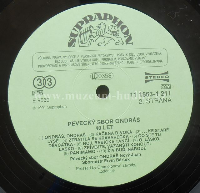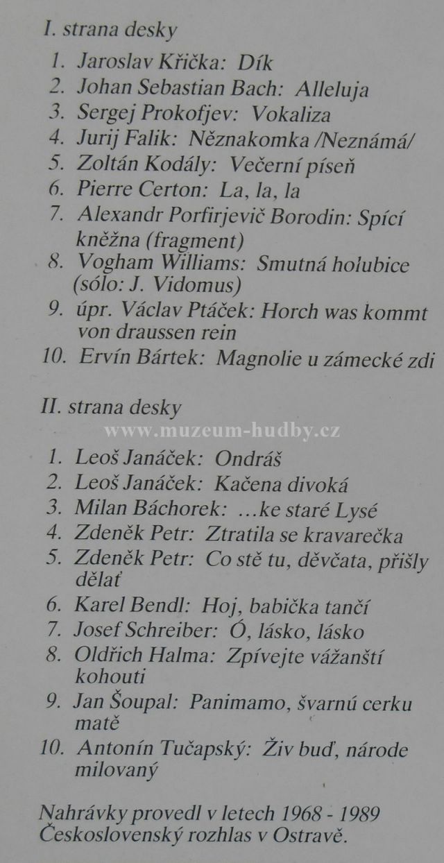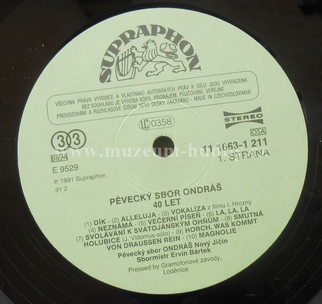 Nosič: 33" LP Rok vydání: 1991 původ: Česká republika Lbl.: Supraphon 11 1663-1 211 kat. číslo: PN 3318274