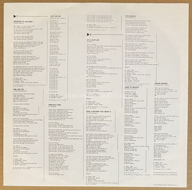 A1 Promises In The Dark A2 Fire And Ice A3 Just Like Me A4 Precious Time B1 It's A Tuff Life B2 Take It Any Way You Want It B3 Evil Genius B4 Hard To Believe B5 Helter Skelter