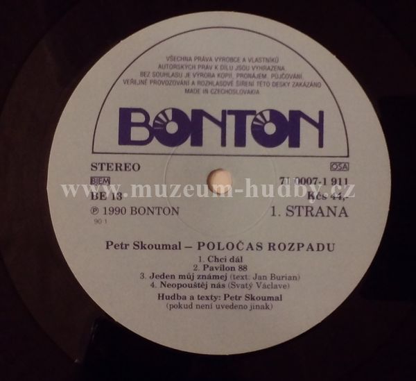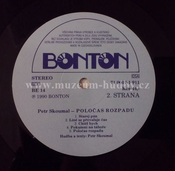 - hraná deska, běžné stopy používání (drobné škrábance a šum nebránící normálnímu poslechu)
