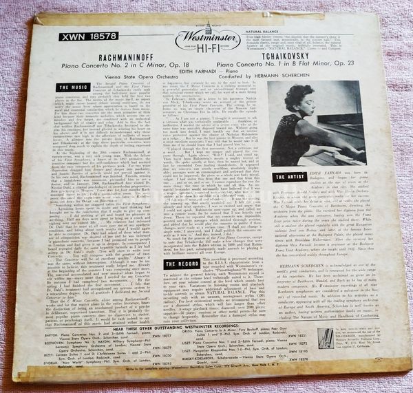 Rachmaninoff / Tchaikowsky / Vienna State Opera Orchestra, Hermann Scherchen, Edith Farnadi