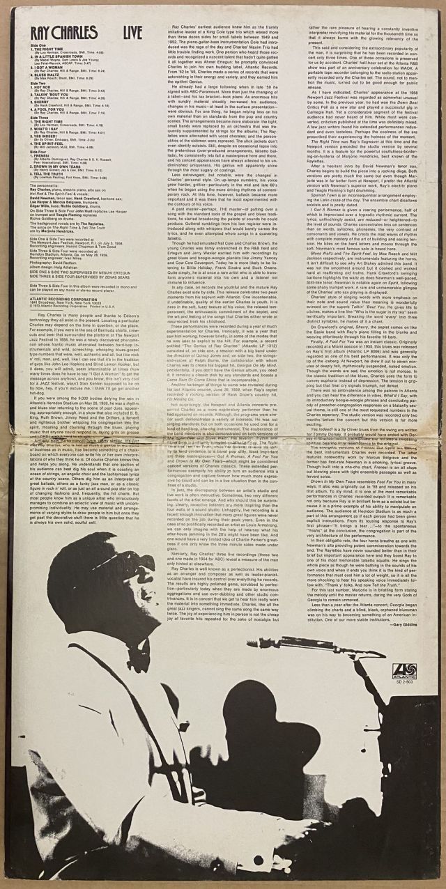 2LP A1 The Right Time A2 In A Little Spanish Town A3 I Got A Woman A4 Blues Waltz B1 Hot Rod B2 Talkin' Bout You B3 Sherry B4 A Fool For You C1 The Right Time C2 What'd I Say C3 Yes Indeed! C4 The Spirit-Feel D1 Frenesi D2 Drown In My Own Tears D3 Tell The Truth