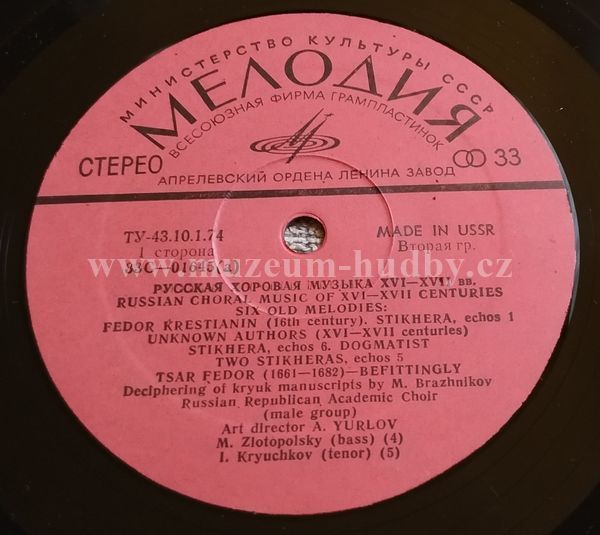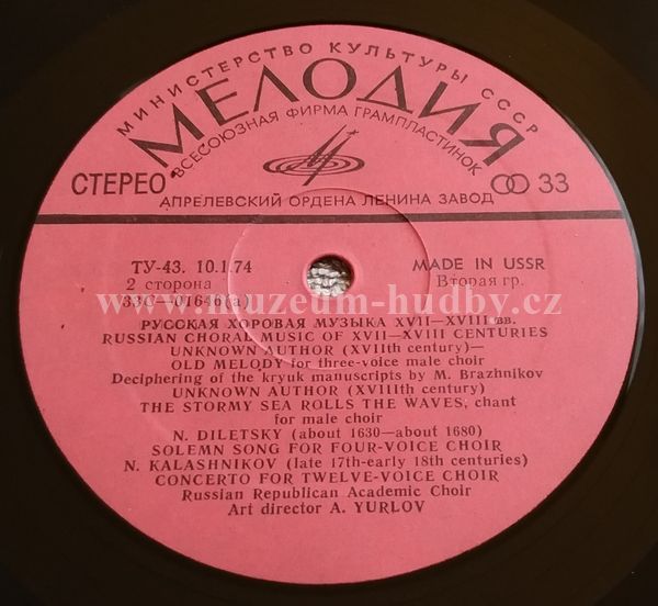 Russian Choral Music Of 16 - 18th Centuries