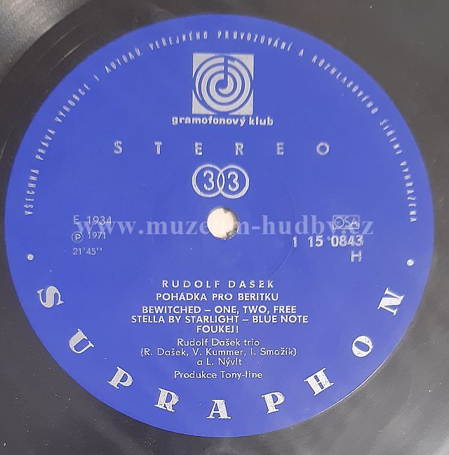 Lbl.: Supraphon – 1 15 0843, Gramofonový Klub – 1 15 0843