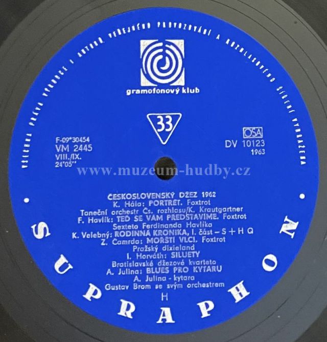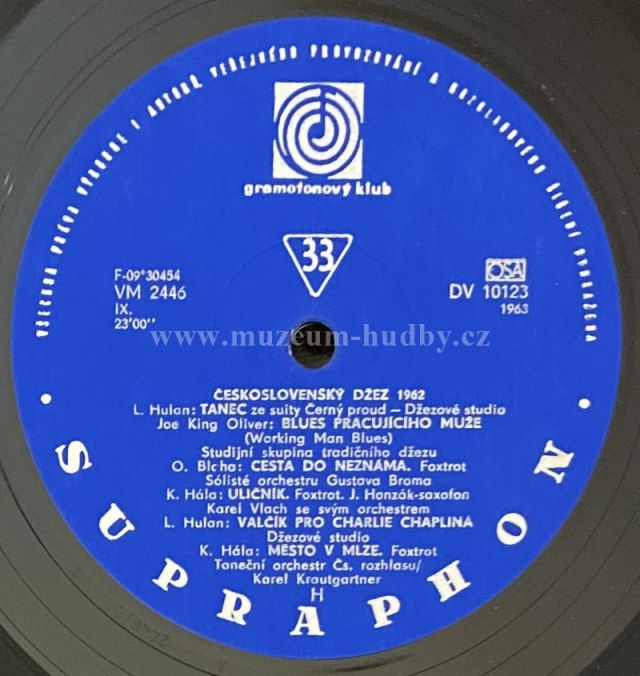 A1 Taneční Orchestr Čs. Rozhlasu– Portrét A2 Sextet Ferdinanda Havlíka– Teď Se Vám Představíme A3 S+H Q– Rodinná Kronika — I. Část A4 Pražský Dixieland– Mořští Vlci A5 Bratislavské Džezové Kvarteto– Siluety A6 Kvartet Orchestru Gustava Broma– Blues Pro Kytaru B1 Džezové Studio– Tanec Ze Suity Černý Proud B2 Studijní Skupina Tradičního Džezu– Blues Pracujícího Muže (Working Man Blues) B3 Vibrafonový Kvartet Orchestru Gustava Broma– Cesta Do Neznáma B4 Orchestr Karla Vlacha– Uličník B5 Trio Rudolfa Rokla– Valčík Pro Charlie Chaplina B6 Taneční Orchestr Čs. Rozhlasu– Město V Mlze