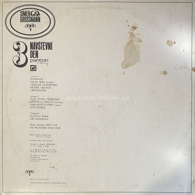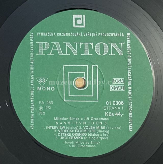 A1 Šimek & Grossmann– Interview (Dialog) A2 Šimek & Grossmann– Volba Miss (Povídka) A3 Šimek & Grossmann– Vědecké Extempore (Dialog) A4 Šimek & Grossmann– Dětské Okénko (Dialog A Hry) A5 Šimek & Grossmann– Ukolébavka (Dialog A Zpěv) B1 Šimek & Grossmann– Plný Pytel Problémů (Dialog) B2 Šimek & Grossmann– Návštěva Cirkusu (Povídka) B3 Jiří Grossmann– Jako Kotě Si Příst (Píseň) B4 Šimek & Grossmann– Květinářka (Dialog)