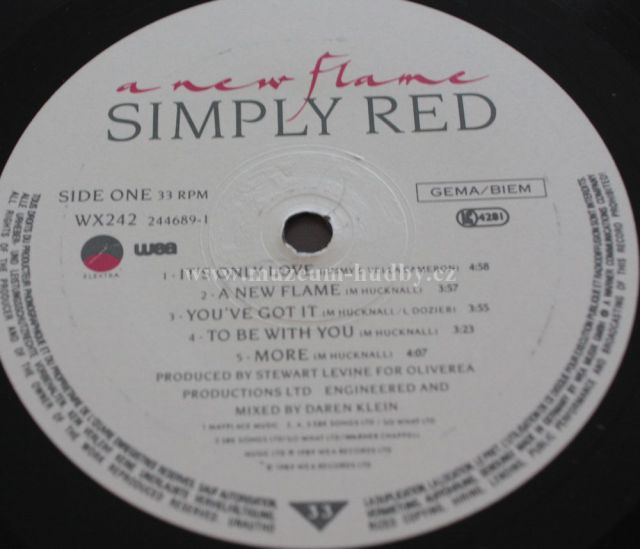 A New Flame is the third album by British pop group Simply Red, released in February 1989. It was a huge success worldwide, becoming the band's first UK number one album and certified 7x Platinum by the BPI for sales of 2,100,000 copies in the UK alone. The album was also certified Gold in the US by the RIAA.