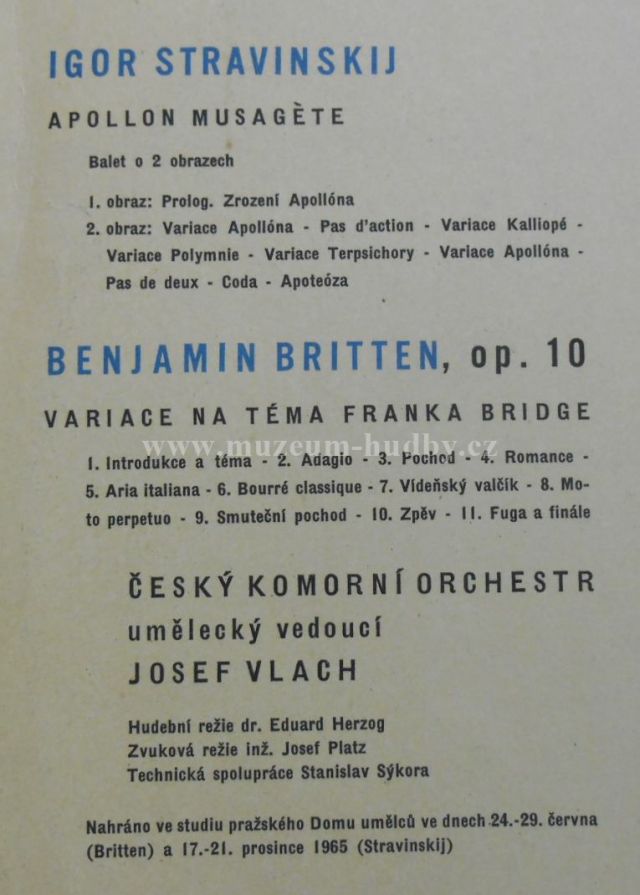 Apollon Musagete / Variace na tema F.Bridge,op.10