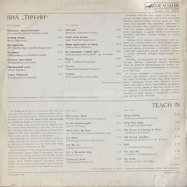 A1 The Circus Show - Цирковое представление A2 In The Summernight - Летней ночью A3 There Ain't No Time - Нет времени A4 I'm Alone - Я одинок A5 Let Me In - Позволь мне войти A6 It's A Beautiful Day - Прекрасный день A7 Tennessee Town - Город Теннесси B1 Ding-A-Dong - Дин-дон B2 Sing Your Song - Спой свою песню B3 The Circus Is Coming To Town - Цирк приезжает в город B4 Old Friend Goodbye - До свиданья, старый друг B5 Doll - Кукла B6 You And Me - Ты и я B7 Fly Away - Улетай