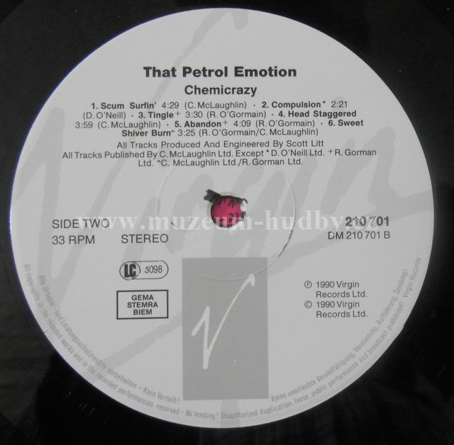 obal je v horni cati trosku poskozen,viz foto,predni a zadni cast !!!!!!!!! A1 Hey Venus 3:18 A2 Blue To Black 3:45 A3 Mess Of Words 3:35 A4 Sensitize Backing Vocals – David Russo 4:03 A5 Another Day 3:49 A6 Gnaw Mark 4:12 B1 Scumsurfin' 4:29 B2 Compulsion 2:21 B3 Tingle Piano – David RussoTrumpet – Joan Jones 3:30 B4 Head Staggered 3:59 B5 Abandon 4:09 B6 Sweet Shiver Burn Bass [Fretless] – Steve Deutsch 3:25