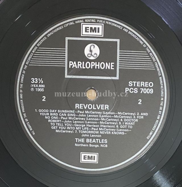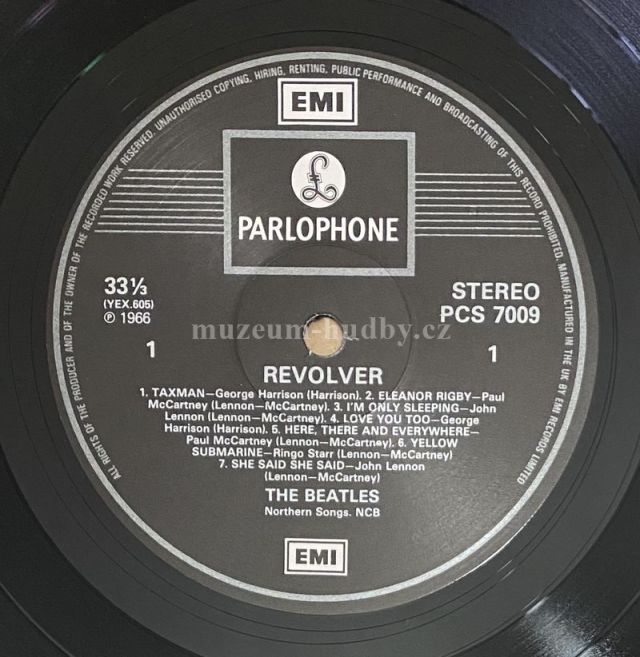 A1 Taxman A2 Eleanor Rigby A3 I'm Only Sleeping A4 Love You To A5 Here, There And Everywhere A6 Yellow Submarine A7 She Said She Said B1 Good Day Sunshine B2 And Your Bird Can Sing B3 For No One B4 Dr. Robert B5 I Want To Tell You B6 Got To Get You Into My Life B7 Tomorrow Never Knows