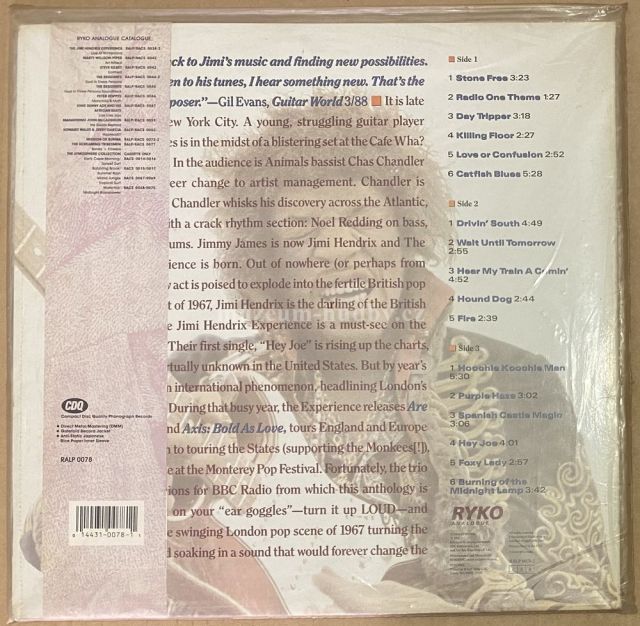 Rykodisc RALP-20078, 1988, Still Sealed!, gatefold, no cutouts! nová deska, zabaleno 2LP A1 Stone Free A2 Radio One Theme A3 Day Tripper A4 Killing Floor A5 Love Or Confusion A6 Catfish Blues B1 Drivin' South B2 Wait Until Tomorrow B3 Hear My Train A Comin' B4 Hound Dog B5 Fire C1 Hoochie Koochie Man C2 Purple Haze C3 Spanish Castle Magic C4 Hey Joe C5 Foxy Lady C6 Burning Of The Midnight Lamp
