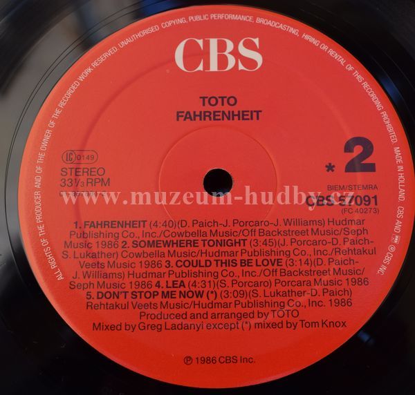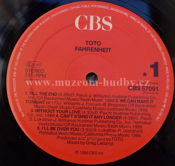 A1 Till The End 5:28 A2 We Can Make It Tonight 4:17 A3 Without Your Love 4:33 A4 Can't Stand It Any Longer 4:39 A5 I'll Be Over You 3:55 B1 Fahrenheit 4:40 B2 Somewhere Tonight 3:45 B3 Could This Be Love 3:14 B4 Lea 4:31 B5 Don't Stop Me Now 3:09