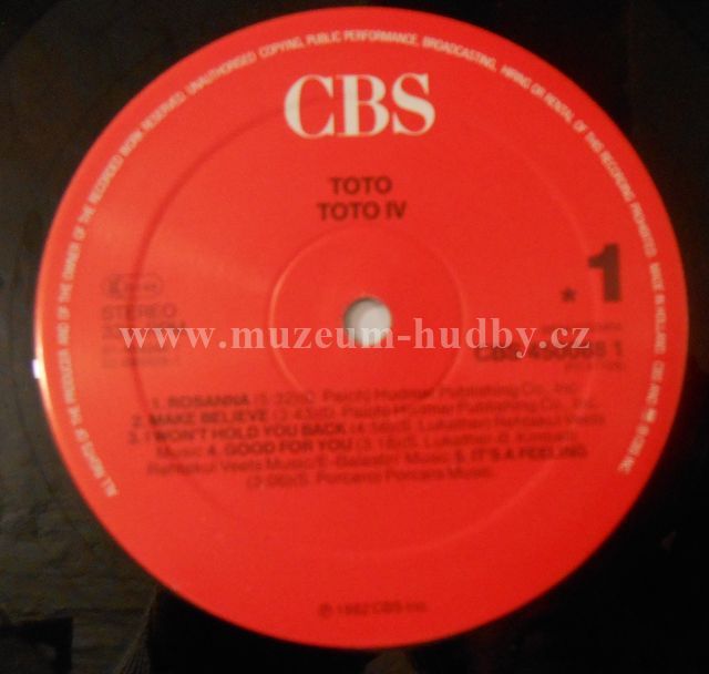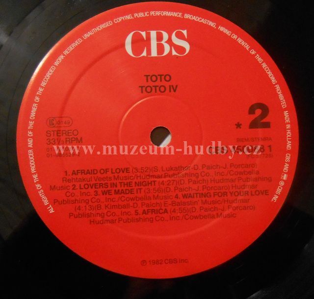 A1 Rosanna 5:32 A2 Make Believe 3:43 A3 I Won't Hold You Back 4:56 A4 Good For You 3:18 A5 It's A Feeling 3:06 B1 Afraid Of Love 3:52 B2 Lovers In The Night 4:27 B3 We Made It 3:56 B4 Waiting For Your Love 4:13 B5 Africa 4:55