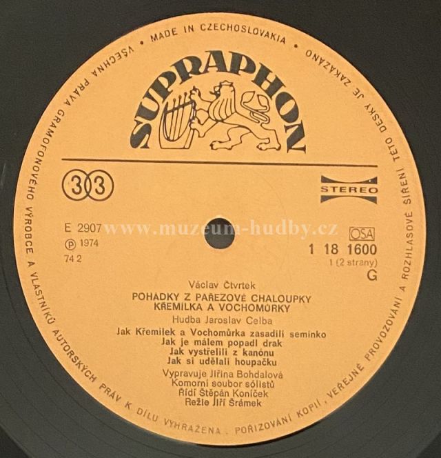 Lbl.: Supraphon - 1 18 1600