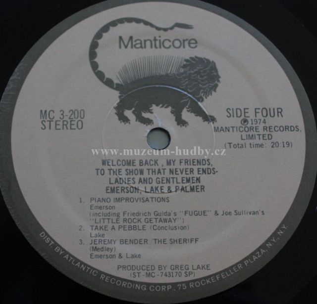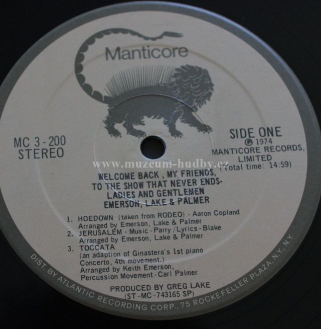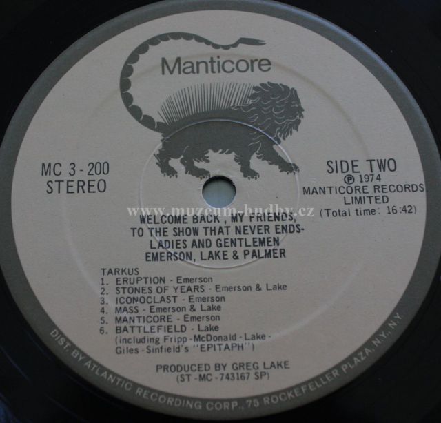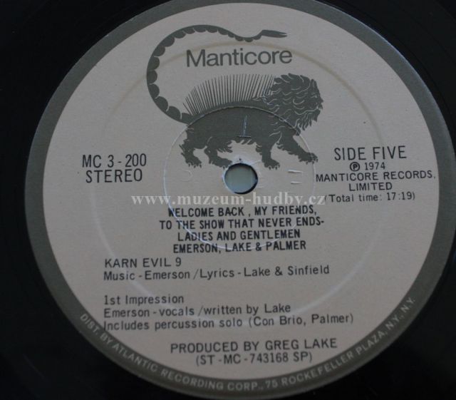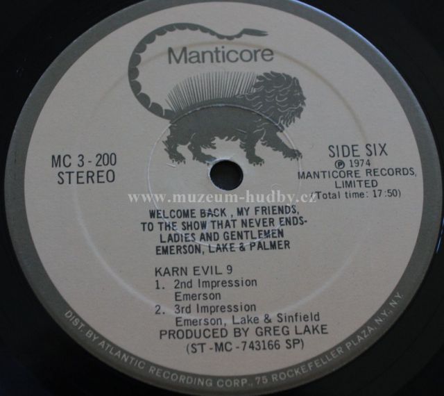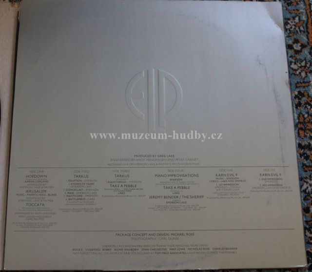 Welcome Back, My Friends, to the Show That Never Ends... Ladies and Gentlemen, Emerson, Lake & Palmer is a 1974 live album by progressive rock band Emerson, Lake & Palmer. It was originally packaged as a three-disk vinyl set in a gatefold ("trifold" with two sections opening away from the center) cover, the inside of which used the letters "E", "L" and "P" as retainers for the individual disks. The album reached #4 on the Billboard album chart, making it ELP's highest charting album in the US.